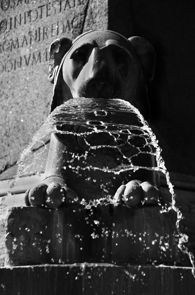 Egyptian Lion Beneath the Egyptian obelisk of Sety I, Piazza del Popolo, Rome