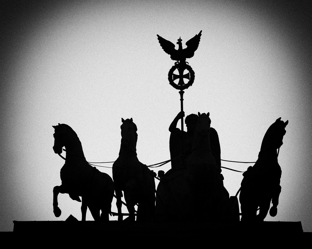 The Berlin Quadriga, Brandenburg Gate, Berlin. The iron cross was originally an olive wreath.
